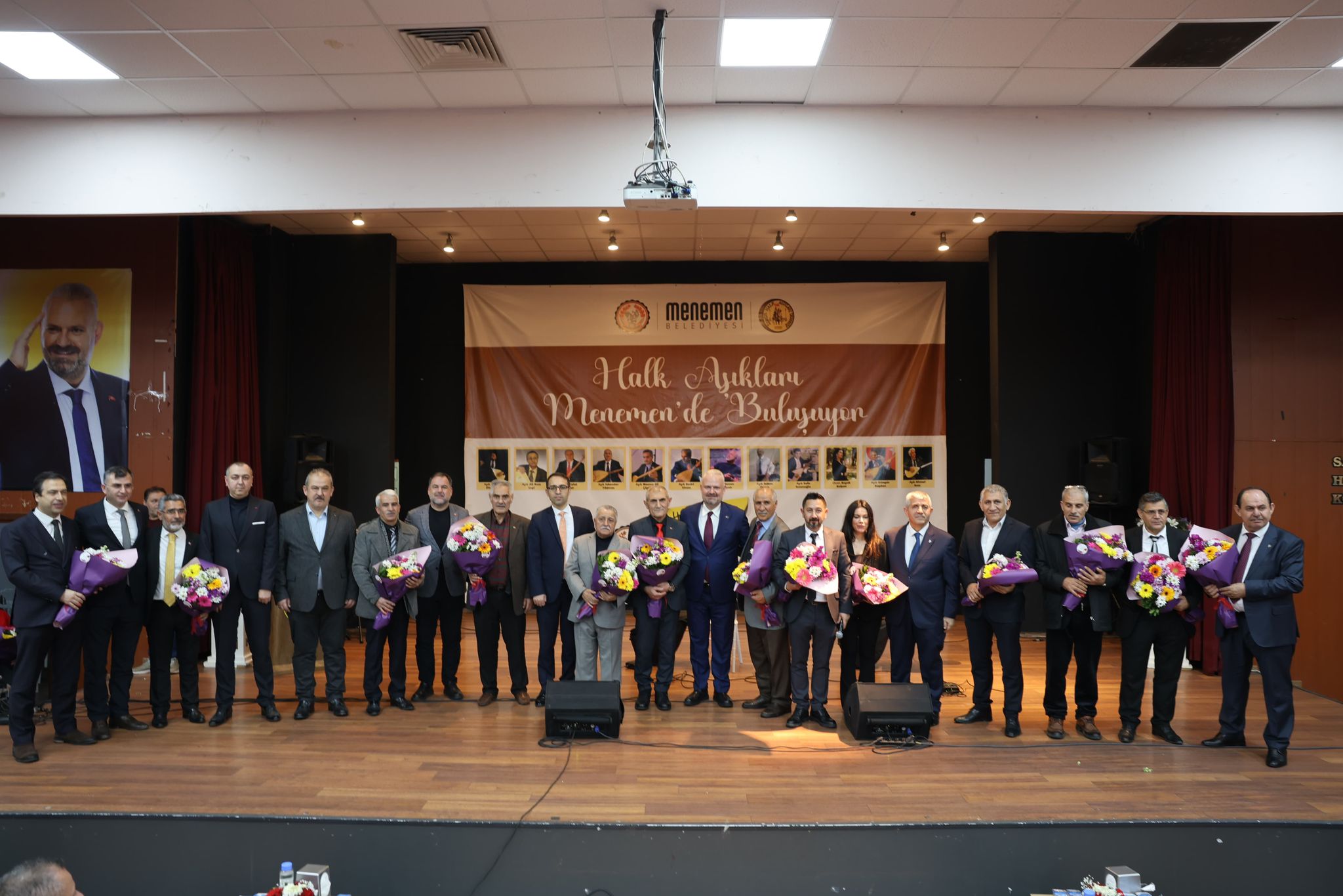 Menemen Belediyesi, Anadolu’da Türk kültürünün en kadim geleneklerinden olan aşıklık geleneğinin muhteşem gecesine ev sahipliği yaptı. Menemen Belediyesi Kültür Merkezi’nde tam 12 aşık ve ozanın katılımıyla Aşıklar Gecesi gerçekleştirildi. Geceye Menemen Belediye Başkanı Aydın Pehlivan ile birlikte MHP İzmir İl Başkanı Veysel Şahin, Menemen Kaymakamı Vedat Yılmaz, AK Parti Menemen İlçe Başkanı Hakkı Durmaz, MHP Menemen İlçe Başkanı Barbaros Çalışçı, kamu kurum ve kuruluşları ile STK başkan ve yöneticileri ve çok sayıda Menemenli katıldı.