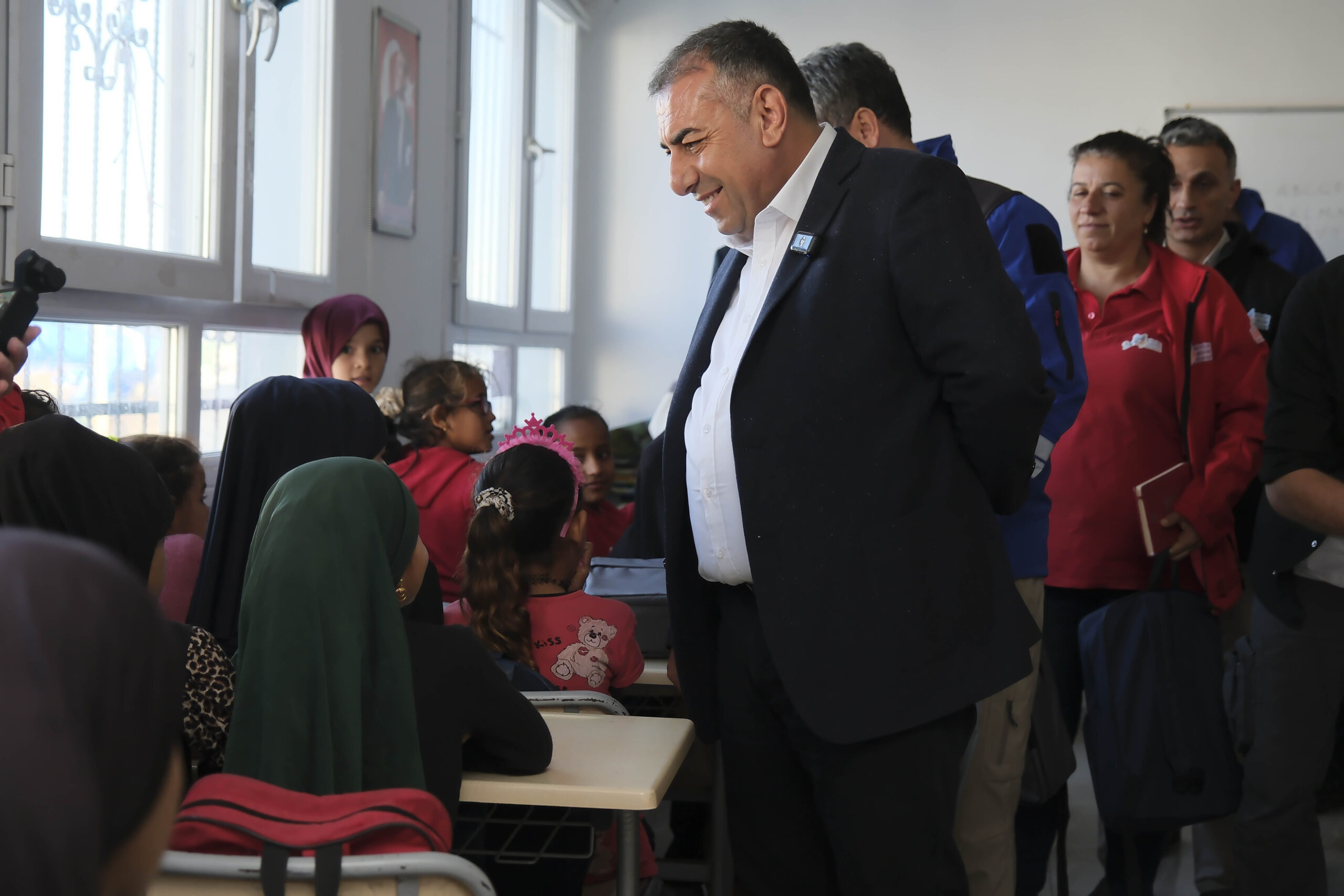 Güngör Geçer çadırlarda çadırlarda kalan vatandaşları ziyaret etti, sağlık taraması ve evde bakım hizmetlerini denetledi, okullarda çocuklarla bir araya geldi.