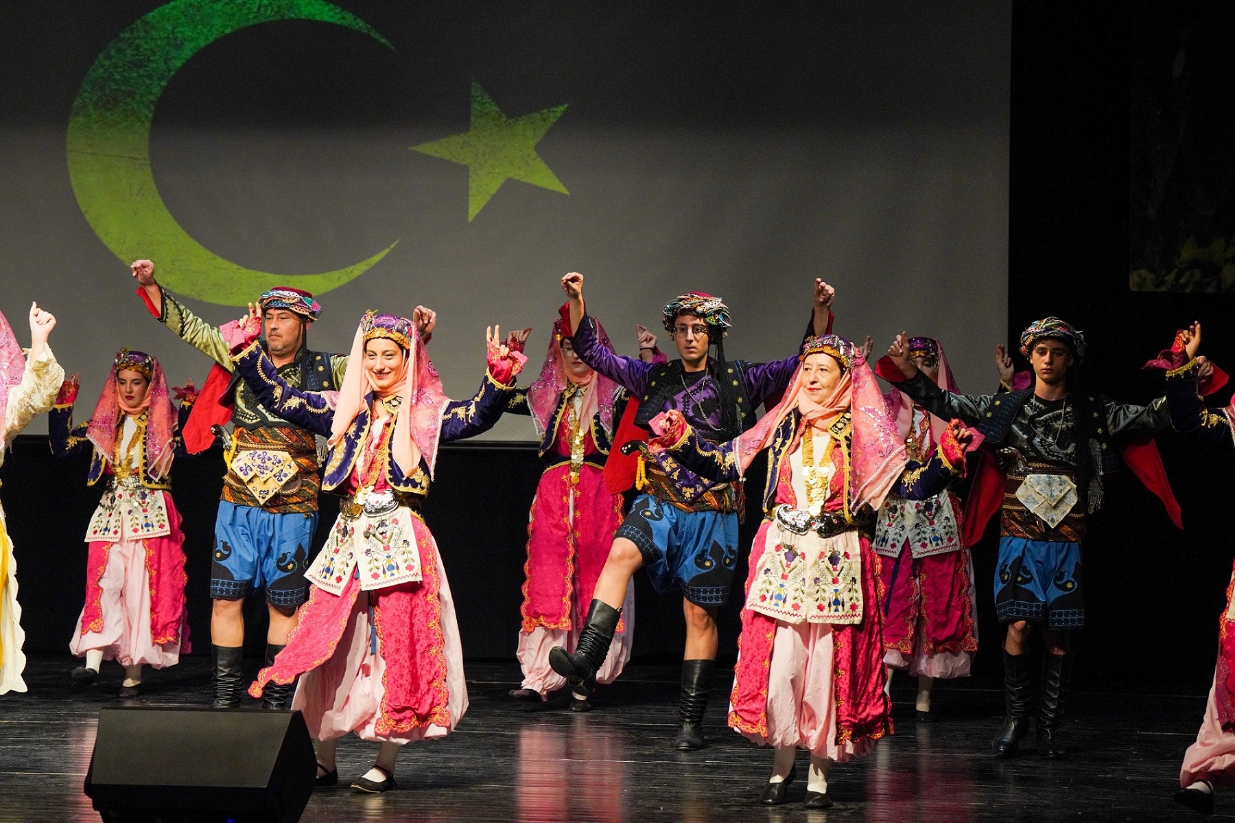Gaziemir Belediyesi Halk Dansları eğitmenleri de harmandalı oynayarak topluluğun ezgilerine eşlik etti.