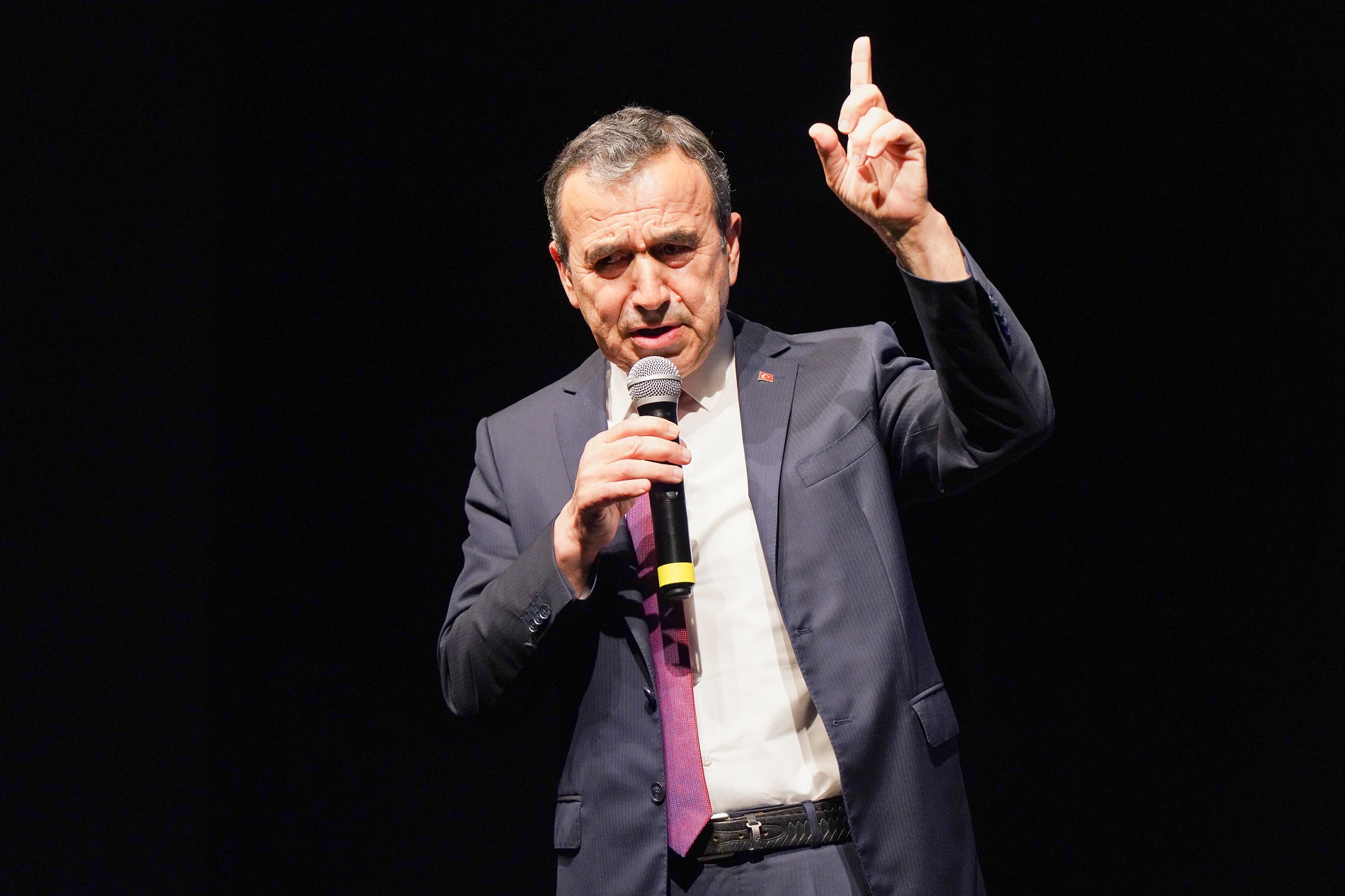 “Atatürk, dünya tarihinin gördüğü en büyük devrimcidir” diyen Naim Babüroğlu, “Kendi dönemindeki dünya liderleri diktatörlüğünü ilan ederken Atatürk, Medeni Bilgiler kitabını yazıyor. Türk kadınına, Türk gençliğine demokrasiyi, özgürlüğü ve insan haklarını anlatıyordu. Tarihin kıskandığı bir liderdi. Atatürk demek akıl, bilim, tam bağımsızlık, umut ve antiemperyalist olmak demektir. Karanlık bir tünelden yürüyor olabilirsiniz. Karamsar olabilirsiniz. Fakat idama mahkûm edildiğinde 39 yaşında olan genç komutan Atatürk, bütün yokluklar, hainlikler ve engeller karşısında umudunu bir saniye kaybetse hiçbirimiz burada olamayacaktık. Onun için hiçbirimizin umudumuzu kaybetme hakkımız yok. Atatürk’le kalın, Cumhuriyet’le kalın, umutla kalın” diyerek sözlerini tamamladı.