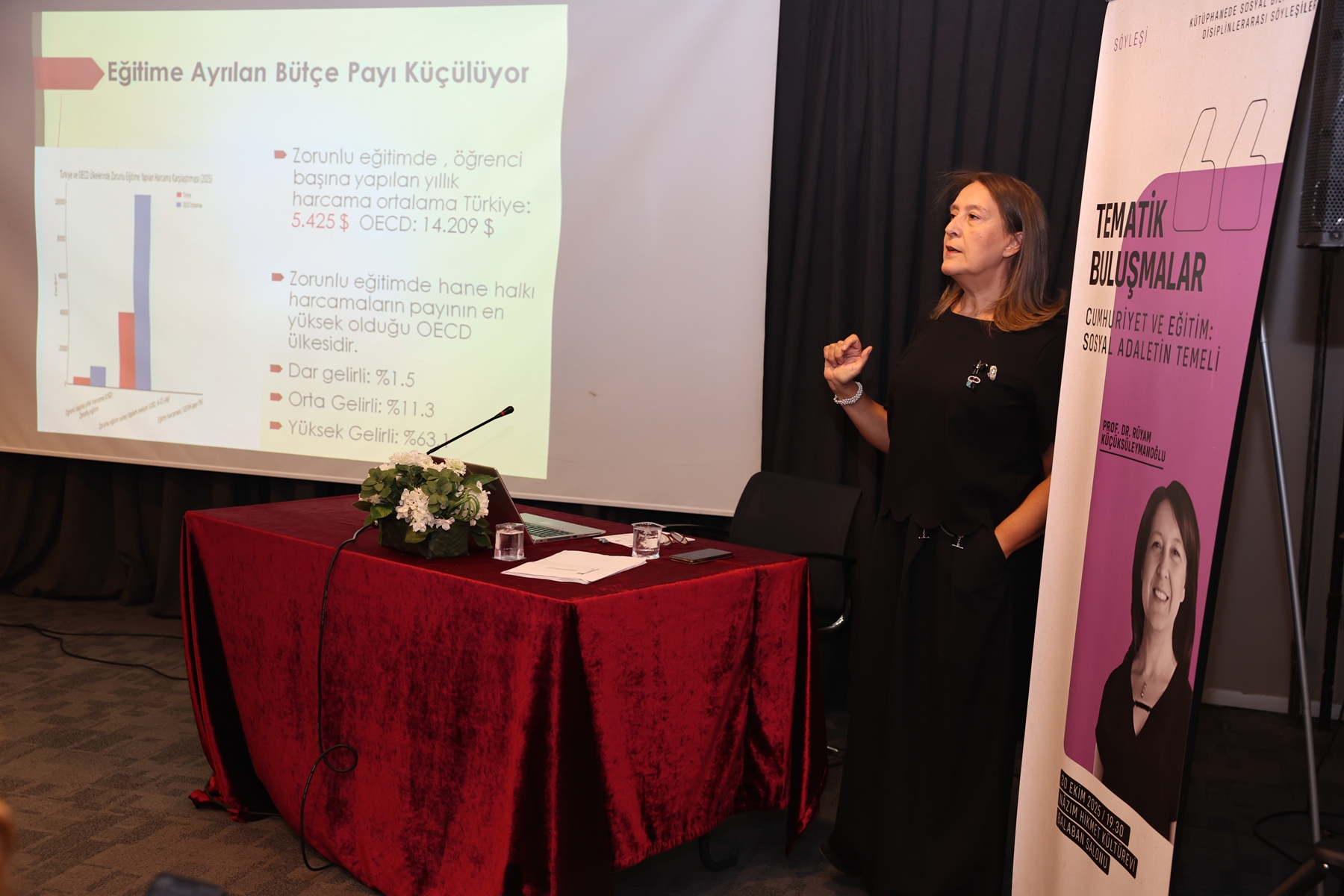 Nilüfer Belediyesi’nin düzenlediği “Tematik Buluşmalar”a Bursa Uludağ Üniversitesi Eğitim Fakültesi Temel Eğitim Bölümü Sınıf Eğitimi Anabilim Dalı Öğretim Üyesi Prof. Dr. Emine Rüyam Küçüksüleymanoğlu konuk oldu. Nazım Hikmet Kültürevi Balaban Salonu’ndaki programda Prof. Dr. Küçüksüleymanoğlu, “Cumhuriyet ve Eğitim: Sosyal Adaletin Temeli” başlıklı bir söyleşi gerçekleştirdi.