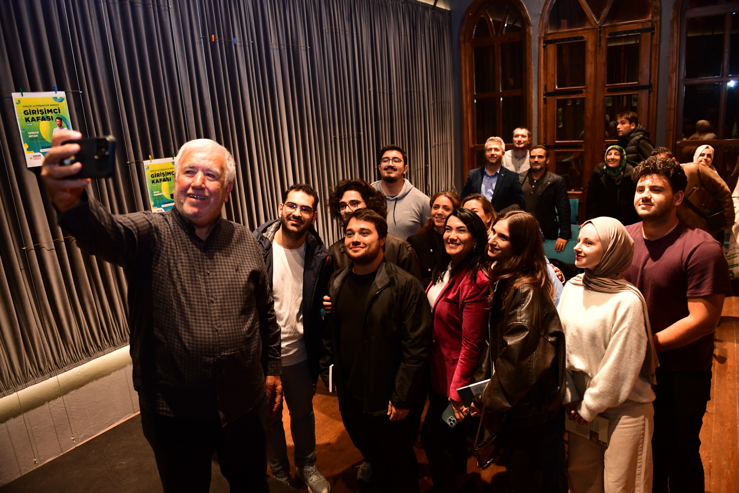 Yaklaşık 2 saat süren söyleşinin ardından genç girişimciler için getirdiği kitapları