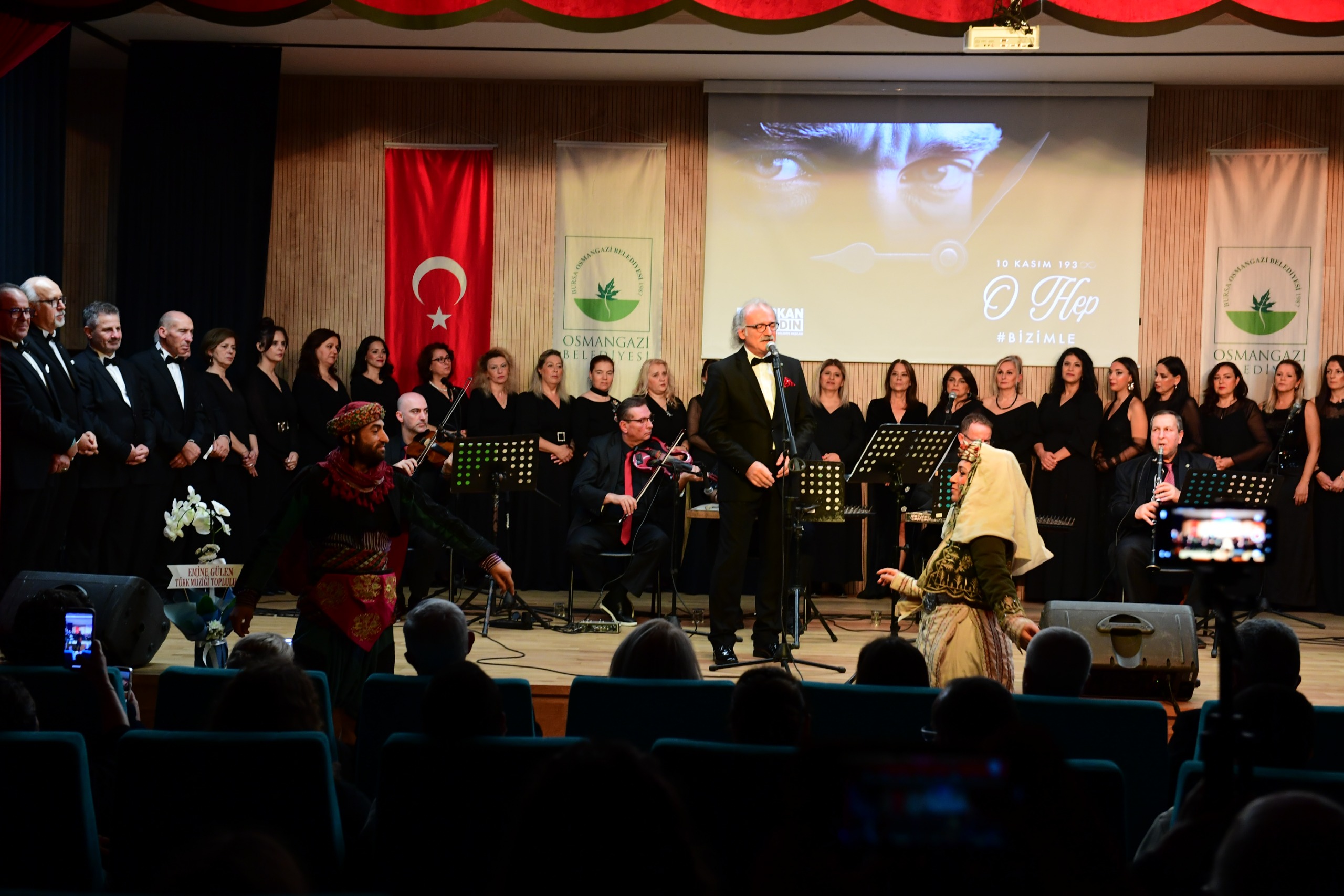 Osmangazi Gösteri Merkezi’nde gerçekleşen anlam ve özlem dolu etkinlikte Rüştü Şentürk şefliğindeki Osmangazi Belediyesi Türk Sanat Müziği Korosu, Ulu Önder Atatürk’ün dinlediği türkülerin performansını sergiledi. Dinletiye CHP İl Başkanı Nihat Yeşiltaş, Bursa Büyükşehir Belediyesi Başkanvekili Berna Esentürk, Osmangazi Belediye Başkan Yardımcısı Mutlu Esendemir, CHP Osmangazi İlçe Başkanı Raşit Gürbüz, Osmangazi Belediyesi Meclis üyeleri Burak İleri ve Cemile Yılgör, Osmangazi Muhtarlar Derneği Başkanı Burhan Mandacı ve çok sayıda Bursalı katıldı.
