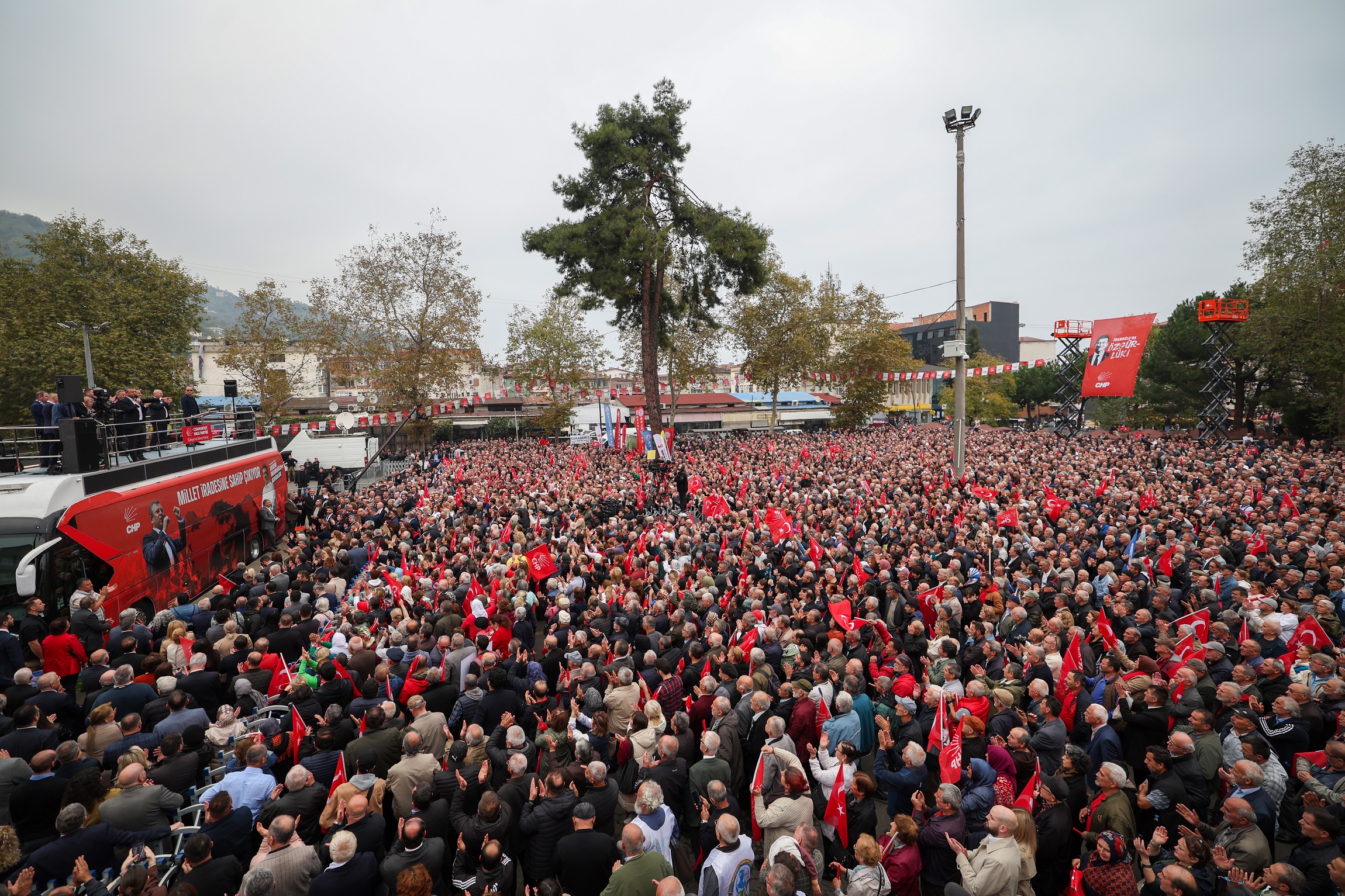 “Bir de benim en üzüldüğüm konulardan bir tanesi Ordu’ya dair, Giresun’a dair, Karadeniz’e dair. Biraz da alçaktan giderseniz uçakla, helikopterle. Bir bakıyorsunuz ki bu güzel sahil şeridinin arkasında dağlar delik deşik, ormanlar delik deşik. Sonra bir bakıyorsunuz ki rakamlara, olandan beter olacak olanlar var. Bugün Ordu’nun yüzde 74’ü maden ruhsatlarına açılmış durumda. Ormanların yüzde 65’i maden ruhsatı olarak verilmiş. Tarım alanlarının yüzde 76’sı maden ruhsatlarına ayrılmış durumda. Biz Cumhuriyet Halk Partisi olarak, elbette madenler çıkarılsın, işlensin birazdan ona da değineceğim. Ama ‘Önce insan’ diyen, ‘Önce doğa’ diyen, ‘Önce Ordu’ diyen ve tarım alanlarına ve ormanlara sahip çıkan anlayışımızı sonuna kadar sürdürüyoruz. Buradan asla taviz vermedik, asla taviz vermeyeceğiz. ‘Bu yıl rekolte yüksek olacak’ dediler, fındığın fiyatını önce bir aşağıya doğru asıldılar. Fındık bahçelerini don vurdu, güneş yaktı, kokarca bastı. Maalesef bilhassa Ordu’da rekolte çok düşük kaldı. Böyle olunca bir miktar fiyatlar yukarıya doğru gidiyordu ki bu güya adı dünya devi boyu devrilsin. Fındıkta tekel olan firma çıktı açıklama yaptı. Kendi yapmıyor da Avrupa’nın en saygın basın yayın kuruluşlarından bir tanesine yalan haber sızdırıyor. ‘Efendim bu sene Türkiye’den fındık almayacağız.’ Böyle olunca piyasada bir manipülasyon, bir panik. Fındık fiyatları aşağıya doğru gelmeye başladı. Ben bunlara en sert tepkiyi göstereceğimizi söyledim ve Rekabet Kurumu’nu göreve davet ettik. 50 olmalıydı ama arada 30 bin ton alım zorunluluğu getirmişler. En az 50 bin – 75 bin ton olması gerekir ama Rekabet Kurumu duruma baktı, bunlar da alım yapacaklarının taahhüdünü verdiler. Buradan öyle dünya devi tanımam. Bu fındıkta bir tane dünya devi var; Ordu, Giresun, Karadeniz. Öyle bugün fındık üreticisini ezmeye kalkarsan bunu bu sene yaparsın. Belki ömrün vefa ederse seneye de yaparsın. Sonra Türkiye Cumhuriyeti’nin hükümetinin başına gelecek kişi öyle sonuncusu gibi çiftçiye, fındık üreticisine ‘Al ananı da git’ diyen biri değil, tam tersine ‘Çiftçi milletin efendisidir’ diyen biri olacak. O gün bu yaptıklarınızla sakın Sanayi Bakanımızın kapısına gelmeyin. Şimdi Covid’i geçirdik, doğru mu? Covid’de hepimiz evlerde oturduk, doğru mu? Bu giden iki arkadaş ve bunun gibi Türkiye’deki bütün sağlık emekçileri ölümü göze aldılar bizi yaşatmak için. Bir yürekten alkış yapalım onlara. Biliyorsunuz Tayyip Bey dedi ki sağlık emekçilerine, ‘Hakkınız ödenmez’ dedi. Tutarlı adam. Ödemedi hakikaten, vermiyor haklarını. Biz gelince vereceğiz inşallah. ‘Deme deme, sana soruşturma açar yine’ diyor. Sen hiç korkma. Onun savcıları varsa benim senin gibi analarım var. Hiç korkma. Onun savcısının adı Akın, benim anam cana yakın. Onda var savcı Akın, benim anam cana yakın. Şimdi şunu söyleyelim.”