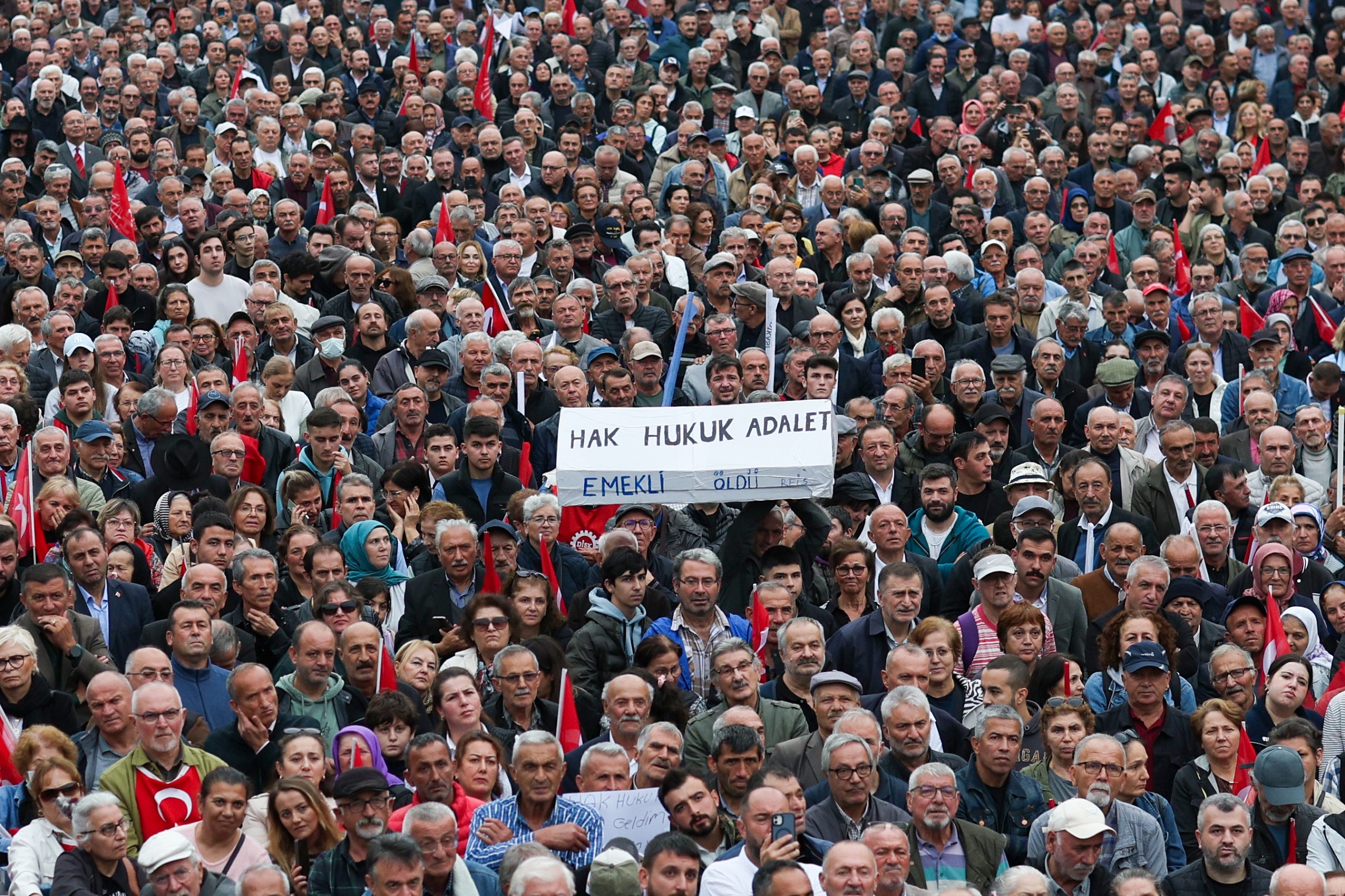 “Bakın dünyada beşinci olmuşuz, 200’ün üzerinde ülke var. Dünyada yüksek enflasyonda beşinciyiz. Bizden kötü dört ülke; İran, Burundi, Venezüella, Güney Sudan. Bu dört ülke dışında dünyadaki 200’ün üzerindeki ülkede enflasyon bizden daha düşük. Bizim bir aylık enflasyonumuz, Avrupa’da yıllık bile değil. Avrupa enflasyon ortalaması, yüzde 3 Türkiye’de, hedef yeni güncellediler, yüzde 33. Bu TÜİK’e göre. Gerçek rakama bakınca yüzde 80’lere geliyor. Bu şartlar altında halen daha bu emeklilere, bu emekçilere yüzde 25 zam yapmanın planını yapıyorlar. Buradan tüm sendikalara, tüm işçilere, tüm emeklilere sesleniyorum: Bu büyük haksızlık, yılda bir sefer asgari ücrete enflasyonun altında zam… Eskiden diyorlardı ki ‘Biz emekçiyi, işçiyi enflasyona ezdirmedik.’ Şimdi Mehmet Şimşek geçen sene gerçekleşen enflasyona değil, hedef enflasyona göre zam verdi. Ezdi. Bu sene Plan ve Bütçe Komisyonu’nda ‘Enflasyonun altında zam vereceğim’ diye ağzıyla söylemiş. Buradan bütün emeklilere ve bütün emekçilere söylüyorum. Bu katlanılmaz, buna karşı mücadele edeceğiz. Direneceğiz, eylemleri büyüteceğiz. Hakkımızı ya alacağız, ya bunları götüreceğiz ve hakkımızı verecek bir iktidarı başımıza getireceğiz. Söz mü?”