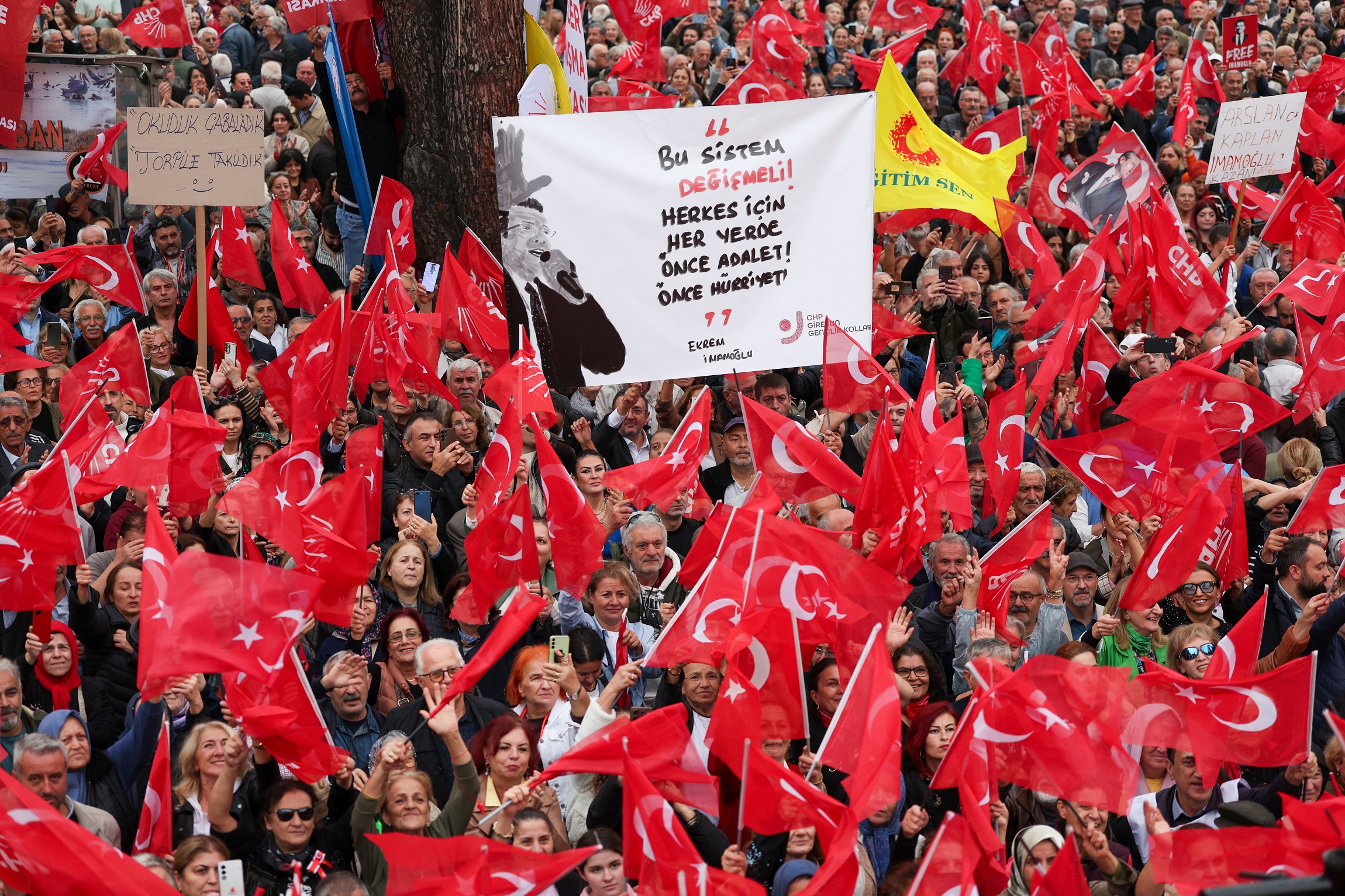 “Bir büyük haksızlığa isyanımız var hepimizin. Neden? Karadeniz’in yiğit evladı, İstanbul Büyükşehri kazanan, mazbatası iptal edilince bir daha kazanan, beş yıl her kötülükten sonra 1 milyon 100 bin farkla kazanan. Karşısına bakan çıkardılar, yendi. Başbakan çıkardılar, yendi. Meclis Başkanı çıkardılar, yendi. Asla AK Parti’ye kaybetmeyen ve sizin 23 Mart’taki üyelerimizin ve 15,5 milyon vatandaşın desteğiyle Cumhurbaşkanı adayımız olan Ekrem İmamoğlu’na, buradan önce bir yürekten alkış ve selam. Sonra Erdoğan’a bir mesaj: Diyordu ki 31 Mart’tan birkaç gün sonra, 19 Mart‘tan, 22 Mart falan. ‘Bir aya kalmaz insan içine çıkamayacaklar.’ Görüyor musun Erdoğan Ordu’yu, insan içine çıkabiliyor muyuz çıkamıyor muyuz? Görüyor musun Ordu’yu? ‘Birbirlerinin yüzüne bakamayacaklar’ diyordu, Erdoğan bak Orduluların yüzüne değil gözünün içine bakarak söylüyorum. Ekrem Başkan masumdur, arkadaşlarımız masumdur. İftira, iftira, iftira atıyorsunuz.”