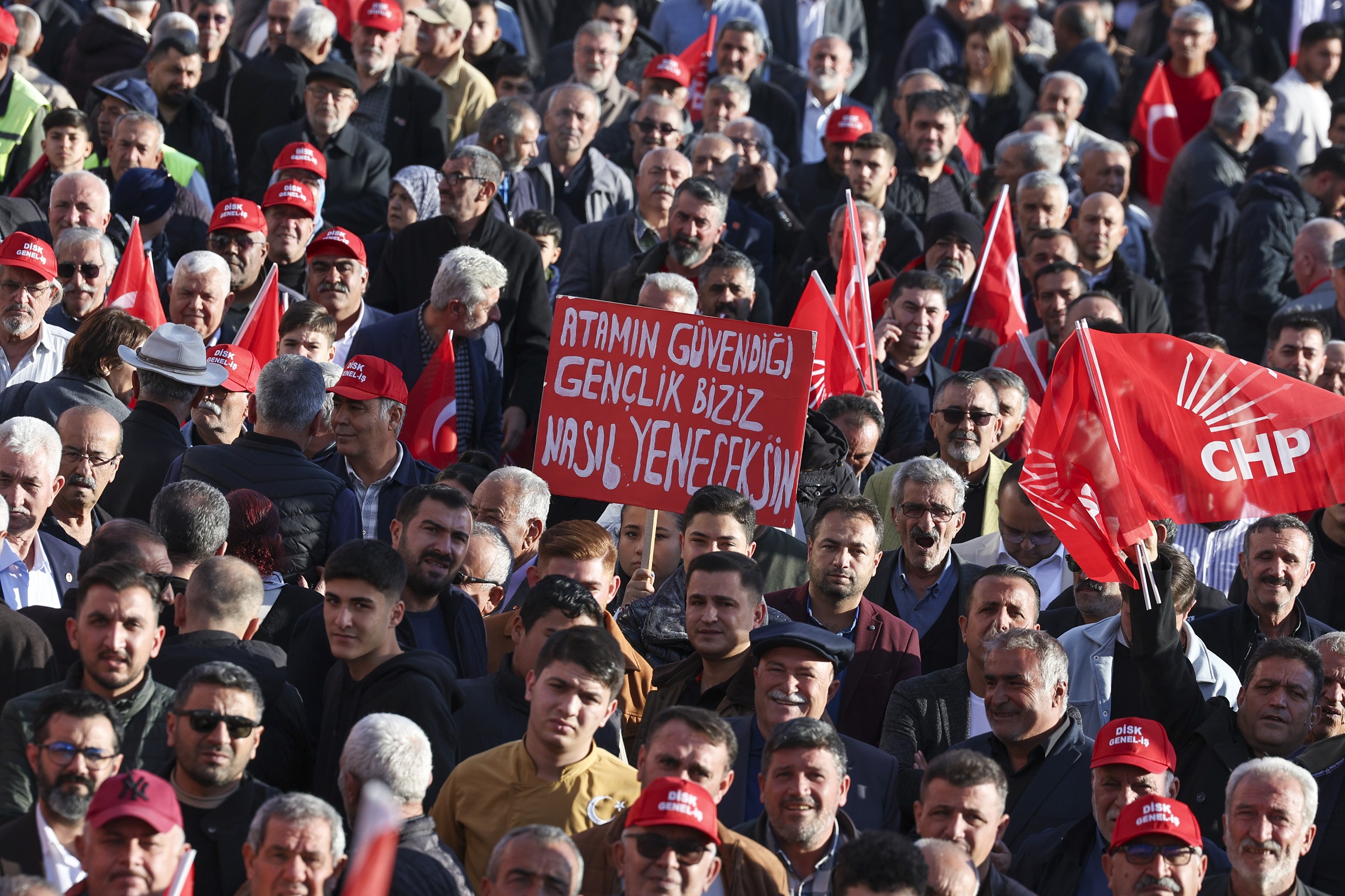 “Hatırlıyorsanız burada yaptığımız mitingte konuşurken demiştim ki ‘Bu seçimi sadece bir parti kazanamaz Kilis’te. Kilis’te bu seçimi Kilis İttifakı kazanır. Türkiye’de Türkiye İttifakı kazanır. Türkiye İttifakı, renklerini ay – yıldızlı al bayraktan alır. Renkleri kırmızı ile beyazdır.’ Dedim ki ‘Kırmızı – beyaz, en büyük Türkiye.’ O gün böyle diye diye Türkiye İttifakıyla, bayrağımıza sarılarak, Kilisimize sarılarak, sabırla, inançla başaracağımıza inararak o gün başardık. Yapılacak ilk seçimde de başaracağız. Bu memleketi, kimseyi yoksulluğa, açlığa, güvencesizliğe, gelecekten endişeye terk etmeyeceğiz. Kimse korkmasın, kimse enseyi karartmasın. Umut bizdedir. Umut Gazi Mustafa Kemal Atatürk’ün partisi Cumhuriyet Halk Partisi’ndedir. Sınır şehri Kilis. Kilis’te gümrük yok, ta Gaziantep’e gidiliyor. Bunu ısrarla söylüyorsunuz. Ben de söylemeye devam ediyorum. Tarım arazilerine devlet eliyle askeri yasak bölge şerhi koydular. Biliyorsunuz, yıllar önce geldim. Sonra Grup Başkanvekiliyken Meclis’te bu sorunu çok dile getirdik. Hiç olmazsa devlet bankalarına bir çeki düzen verdiler. Ama bir kez daha söylüyoruz: Bu şehrin tapularından şerhi kaldırın, bu şehrin tapularını değersiz, kıymetsiz, yok saymayın. Bu tapuları ipotek kabul etmeyenler, bu tapuları güvence kabul etmeyip Kilislilere kredi vermeyenlere söylüyorum: Kilis yalnız değildir, Kilis’i ezdirmeyiz. Kilis’i karınca gibi görmeyin. Karıncanın kardeşi var. O da Cumhuriyet Halk Partisi’dir kardeşim. Afrin Barajı yıllar önce programa alındı. İmzalar, fotoğraflar, törenler… Ama baraj bir milim ilerlemiyor. Amanos Tüneli’ni 2014’te duyurdular, 11 yıl oldu. Şimdi ‘2031’de açacağız’ diyorlar. Bu yüzden bu ülke demokrasiyle yönetiliyorsa, sandıktan çıkan gelip hizmet ediyorsa, işini iyi yapan kalacak ve yapamayan gidecekse artık bu düzen değişecek. Kilisli kime hizmet ediyorlarsa gidecekler oyu onlardan isteyecekler. Zenginlerden, yandaşlardan, müteahhitlerden istesinler. Kilis kendisini kim görüyor, kim duyuyor, kim hizmet ediyorsa bundan sonra ona sahip çıkacak. Öyle mi? Söz mü?”