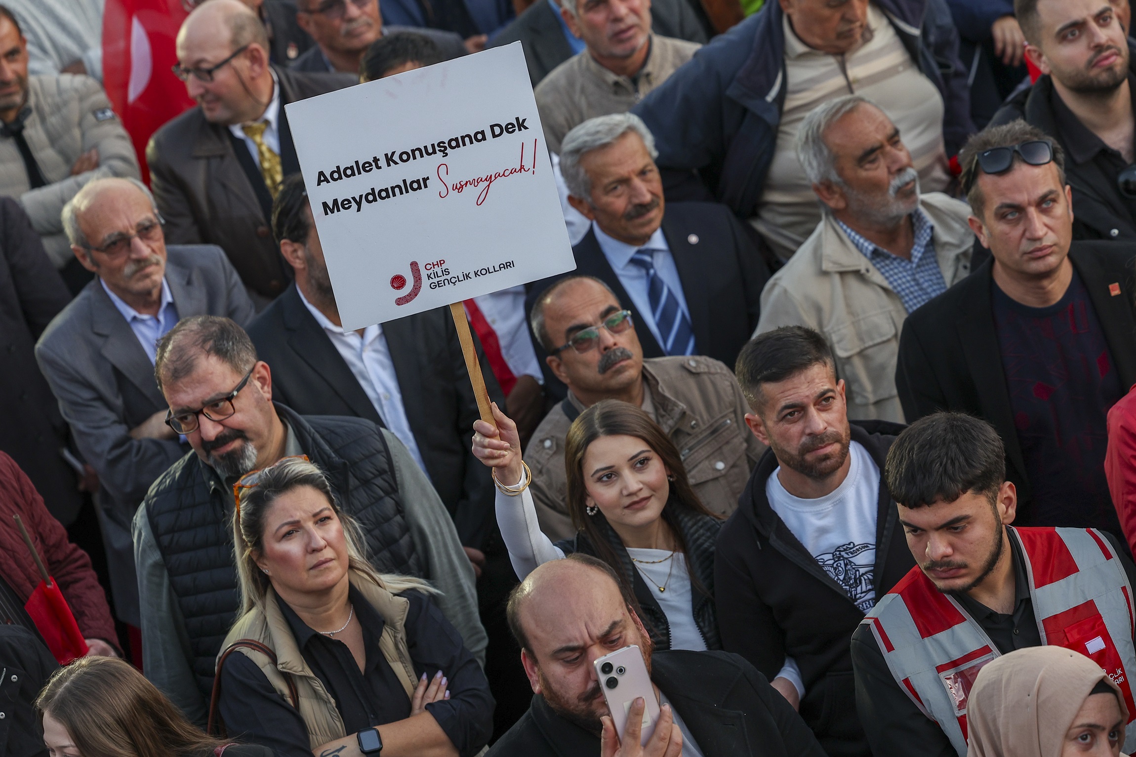 “Bir yanda çok kirli bir yol açtılar. Bir yanda bu ülkenin namuslu, şerefli, dünya kadar hakim ve savcısı tek maaşla, onuruyla kirada oturuyor, verilirse mütevazi bir lojman, orada duruyor. Kendisine verildiyse bir araç, o araçla işine gidiyor. Yoksa arabasına biniyor, toplu taşımasına biniyor. Ama bir yandan bir savcıya boğazda villa, 47 milyon lira. Yapıldığı gün. Şimdinin 58 milyon lirası. Yani bir öğretmen emekli olunca 1 milyon lira ikramiye alıyormuş. Onu bile alamıyormuş. 58 öğretmenin 30 yıllık emeğiyle aldığını, o villanın sadece tadilatına harcamışlar. Lüks araçlar, lüks yatları gezmeler, Amsterdam’da falan yatlara bakmalar, oralarda dolaşmalar. En son Lüksemburg’da Eti Maden şirketinden gizli ikinci maaşı almalar. ‘Bir hakim, bir savcı, başka hiçbir iş yapamaz, başka para kazanamaz’ kuralı var. Bu kadar namuslu hakim, savcı bu işleri böyle yaparken; birileri çıkıyor maalesef ikinci maaşı alıyor. Hem de yurt dışından Euro ile alıyor. Niye? Çünkü bu işleri bu paraya herhangi birine, herhangi bir şekilde yaptıramazsın. Çünkü burada savcı savcılığa bırakmış, gladyatör olmuş. Var ya filmlerde, imparator var. Gladyatör zavallı, savunmasız adamın boğazına bıçağı dayıyor, bakıyor imparatora. Böyle yapınca kesiyor kafasını. Suçu işliyor ama sorumlu olmuyor. Neden? İmparator adına suç işliyor. Şimdi de ülkeyi yöneten imparator adına, bir tek adamdan talimat alıp suçsuz, günahsız insanları katleden, onurlarına saldıran, haysiyetlerine saldıran, geleceklerini karartan bir anlayış var. Bunun için Kilis‘in vicdanına sığınmaya geldik. Bunun için Kilis’te hak, hukuk, adalet aramaya geldik. Sözün sonuna gelirken, tab,, İstanbul’da geçen hafta da böyle yaptık. Normalde bu arabalardan ‘Ya hep beraber ya hiçbirimiz’ şarkısını, Ekrem Başkan için Yiğidim Aslanım’ı, biterken ‘Yürüyelim arkadaşlar’ı hep birlikte söylüyoruz. Gönül Kilis’te de böyle bir miting istiyordu ama 20 tane yiğidimiz Azerbaycan’dan gelirken Gürcistan’da uçak düştü. 20 tane şehidimiz var. Maalesef acımız çok büyük. Bir kez daha hepsine Allah’tan gani gani rahmet diliyorum. Milletimizin başı sağ olsun, hepimizin acısı çok büyük. Onun için buradan gün boyunca da müzik çalmadı. Bu sırada da çalmıyoruz. Sonrasında da çalmayacağız. Ama sona gelirken müziğin yerine veya kararlılığımızı ifade etmek için bir şeyi hatırlatayım.”