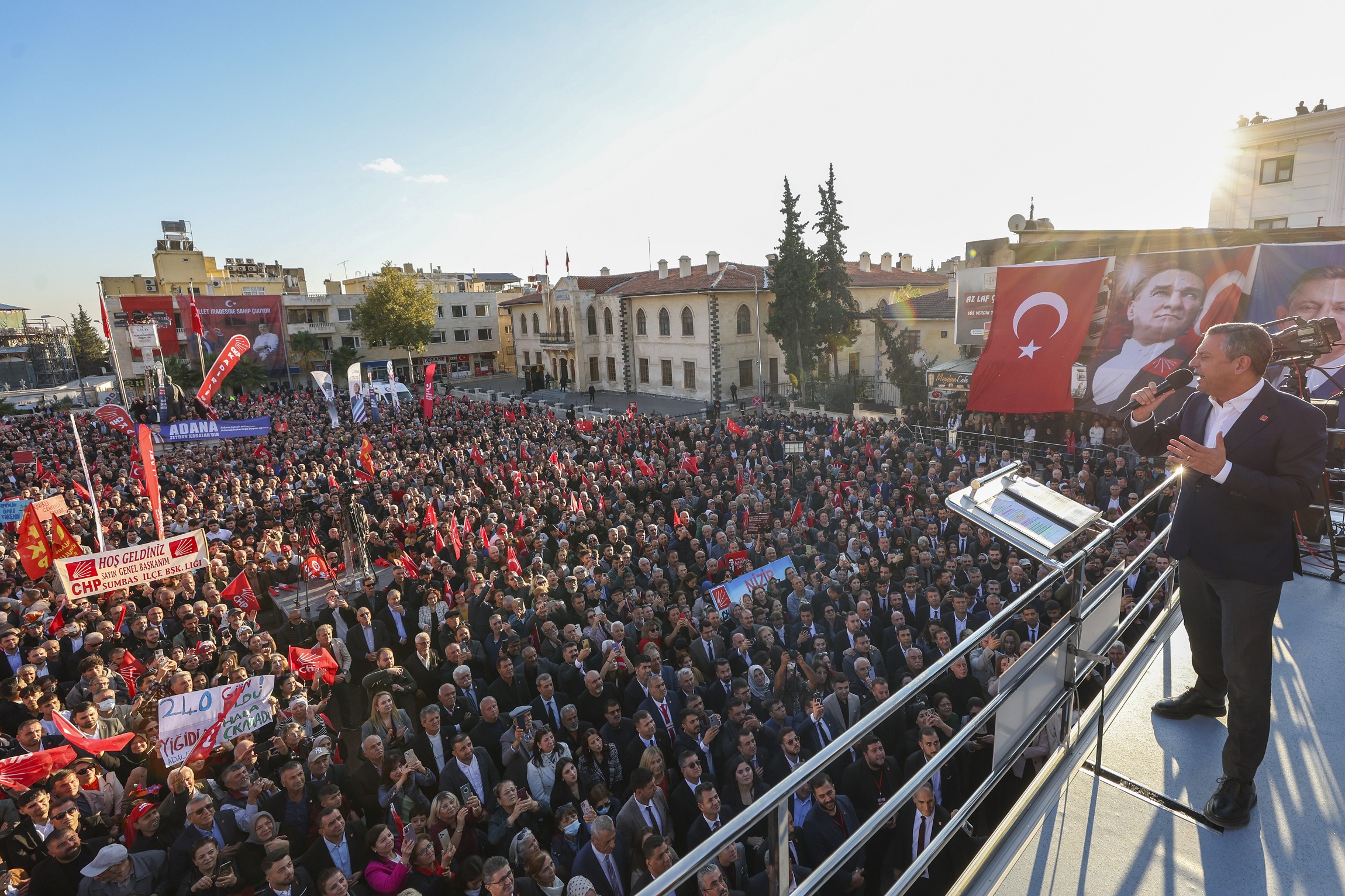 Cumhuriyet Halk Partisi Genel Başkanı Özgür Özel, Kilis’te düzenlenen Millet İradesine Sahip Çıkıyor Mitingi’ne katıldı. Cumhuriyet Halk Partisi Lideri Özel, burada yaptığı konuşmada, “Bir kez daha buradayım, bu meydandayım. Sizin yanınızdayım, aranızdayım. Size sarılmaya, size sığınmaya, buradan Türkiye’ye sesimizi duyurmaya geldik. Hoş geldiniz, şeref verdiniz Kilis’in güzel insanları. Bugün burada Kilis’i duymaya geldik, Kilis’in sorunlarını duyurmaya geldik. ‘Ne yapıyoruz, ne yapacağız?’ Onu konuşmaya geldik. ‘Ne haksızlıklara uğruyoruz, nasıl mücadele ediyoruz? Bundan sonra omuz omuza ne yapacağız?’ Bunu Kilis’ten tüm Türkiye’ye, dünyaya haykırmaya geldik” dedi. Özel, şunları söyledi: