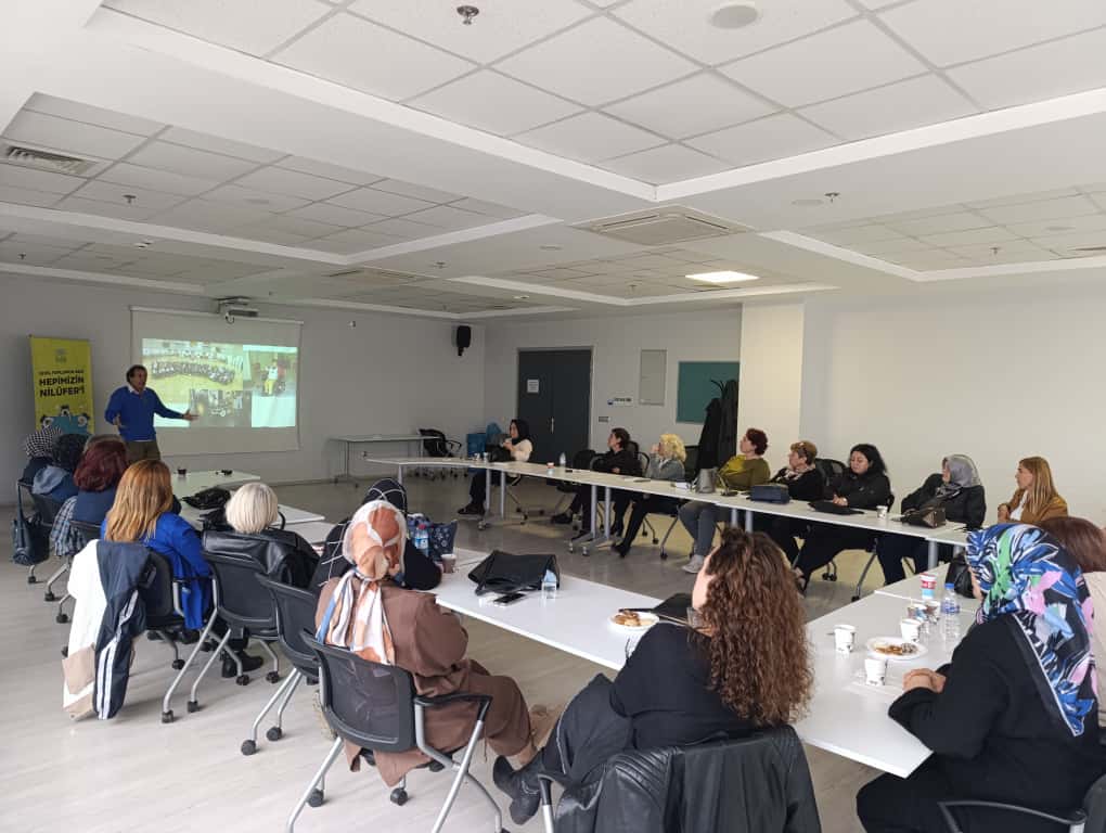 Öğleden sonra ise Alternatif Yaşam Derneği Başkanı ve eğitmen Ercan Tutal, mahalle kadın derneklerinin temsilcilerine derneklerde gönüllü yönetimi ve kapsayıcılık ile ilgili bir eğitim verdi.