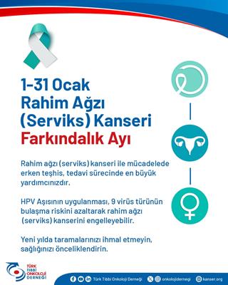 “Serviks Kanseri Farkındalık Ayı, kadınları bilinçlendirmek, yanlış inanışları ortadan kaldırmak ve koruyucu sağlık hizmetlerinin önemini hatırlatmak için önemli bir fırsattır. Unutulmamalıdır ki; bilgi, aşı ve tarama ile serviks kanseri büyük ölçüde önlenebilir.”