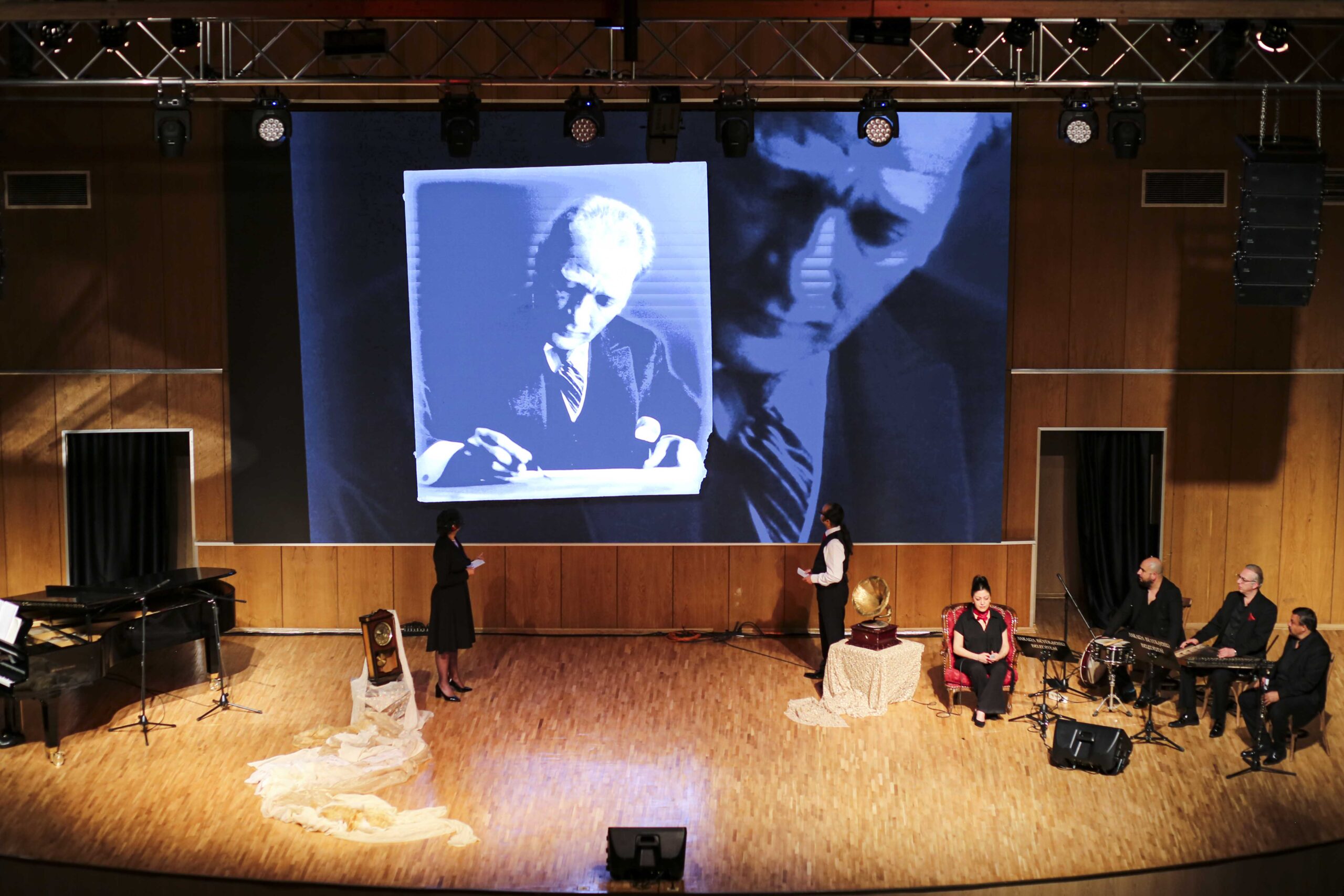 “Son 11 Ay’ aslında bizim 2020 yılında tasarımını yaptığımız bir projeydi. Bu projede aslında birazcık şunu göstereyim istedim; Ata’mızın 1938 yılında son 11 ayını nasıl geçirdiğine ilişkin ve buradan adım adım ay ay bakarken aslında hem çok yoğun bir tempoda hem de bir yandan hastalık ilerliyor. Çok duygusal, benim için dehem yazarken hem araştırırken çok duygusaldı. Aynı şekilde sahne tasarımını yaparken ya da rejisini yaparken de aslında şarkılarla aynı şeyi hissettim. Orada biraz da Atatürk’ün daha insan hâlini, büyük lider, devlet adamı, asker, büyük önder, evet bu vasıflarının yanı sıra o insan hâliyle yansıtmak istedim.”