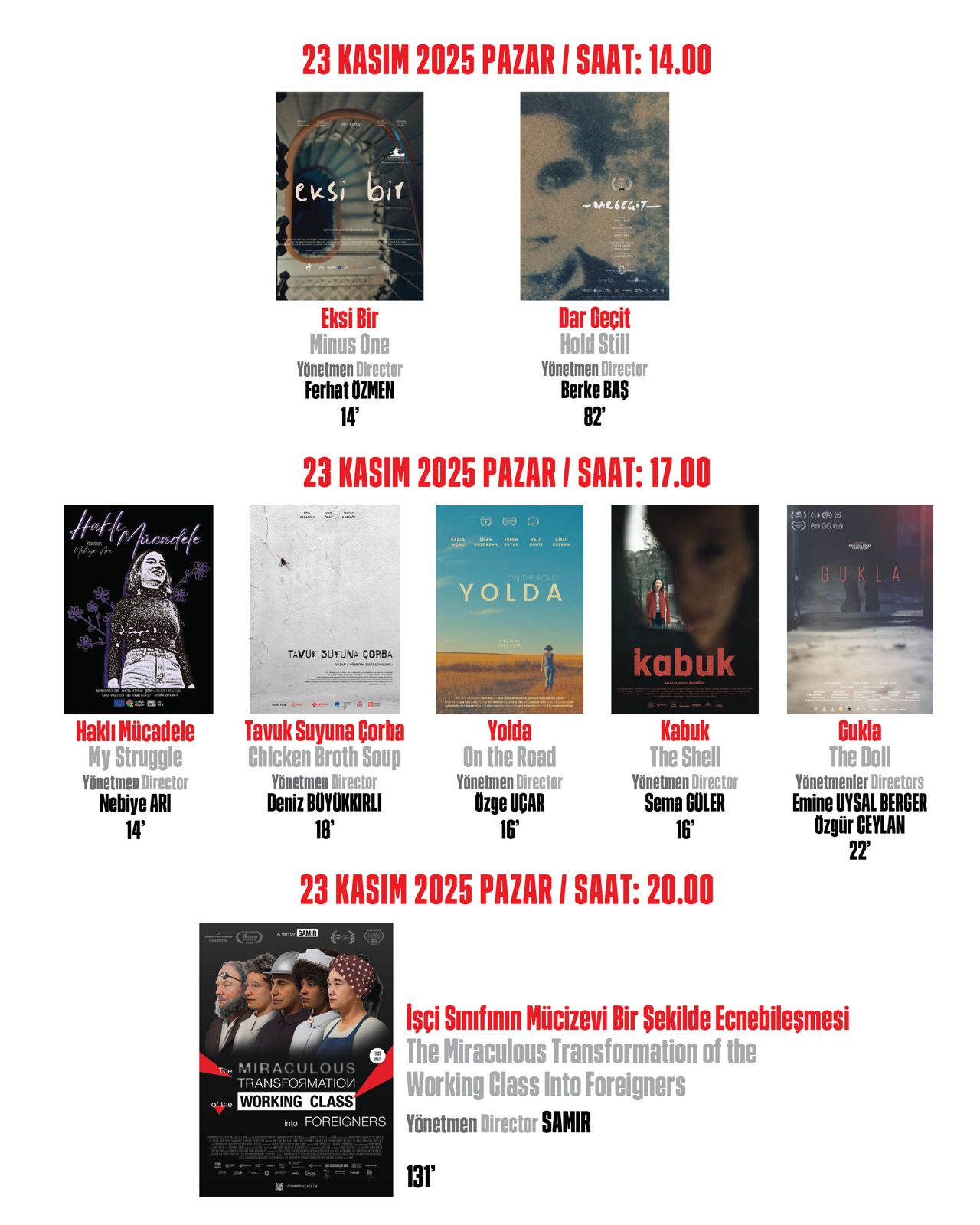 Lüleburgaz Belediyesi ve birçok sendika, sivil toplum kuruluşunun desteğiyle gerçekleştirilen festival 21 Kasım Cuma saat 19:00’da ‘Döngü’ filminin gösterimi ile başlayacak.