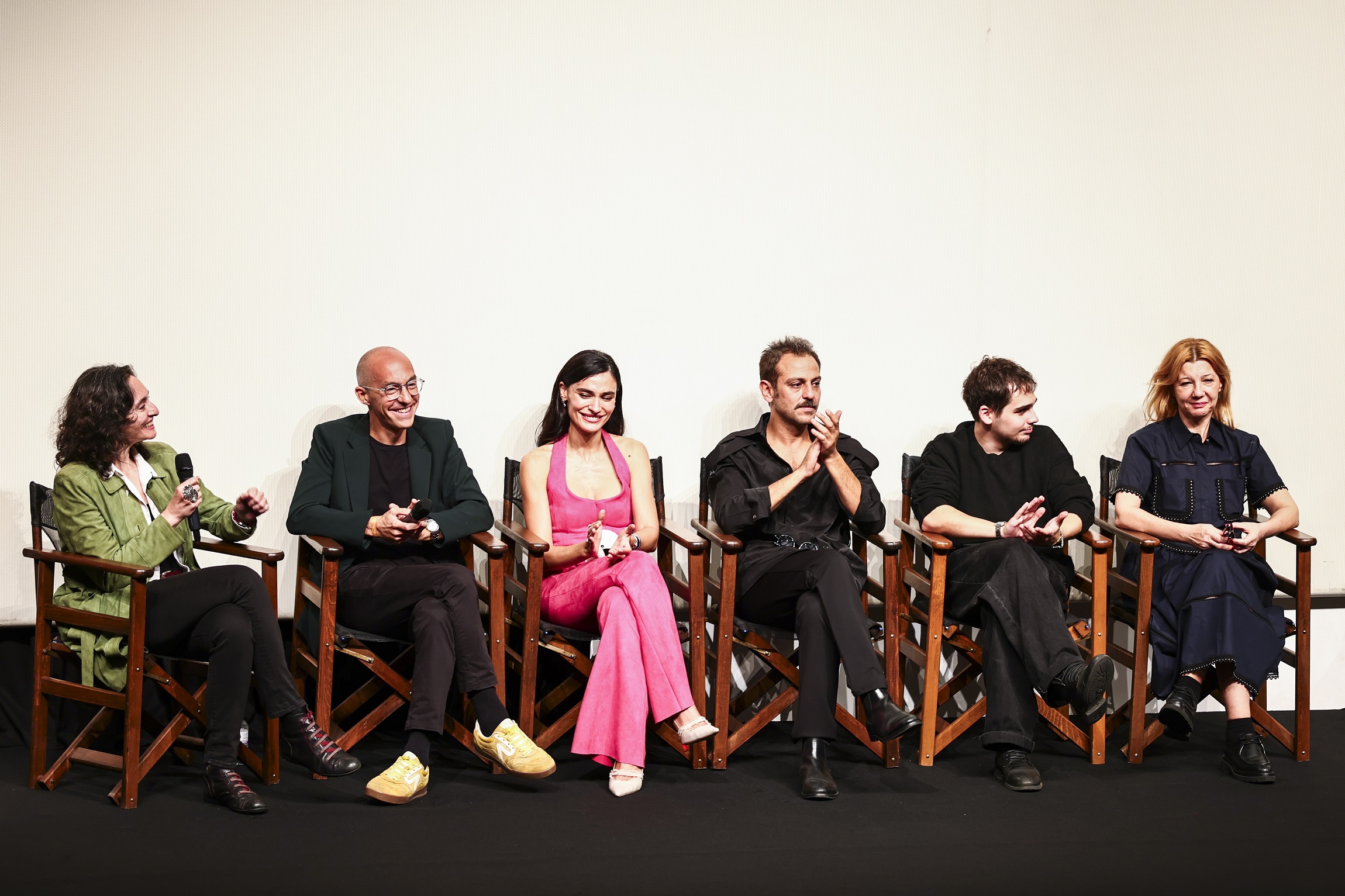 Erkan Kolçak Köstendil ise bunun üzerine gülerek “Cevap hakkımı kullanayım” diye mikrofonu aldı: “A4 konusuna açıklık getirmek istiyorum; evet, A4 kağıtlar vardı ışıklar için. ‘99 yılında geçtiği için hikaye; Müslüm Gürses’in Gülhane konserinin patladığı dönem, ben de beyaz takım elbiseyle oynamak istedim. Ama bütün ışık dengesini bozduğum için o takımı giyemedim” Oyuncu, sözlerini; “Bu, benim Çağla ve Guillaume ile ikinci filmim. Onların sinemaya tutkusunu, aşkını o kadar iyi biliyorum ki… Herhalde ‘birinin düğünü var, onu çekmeye gidiyoruz’ deseler ona da gider, oynarım” diye noktaladı.